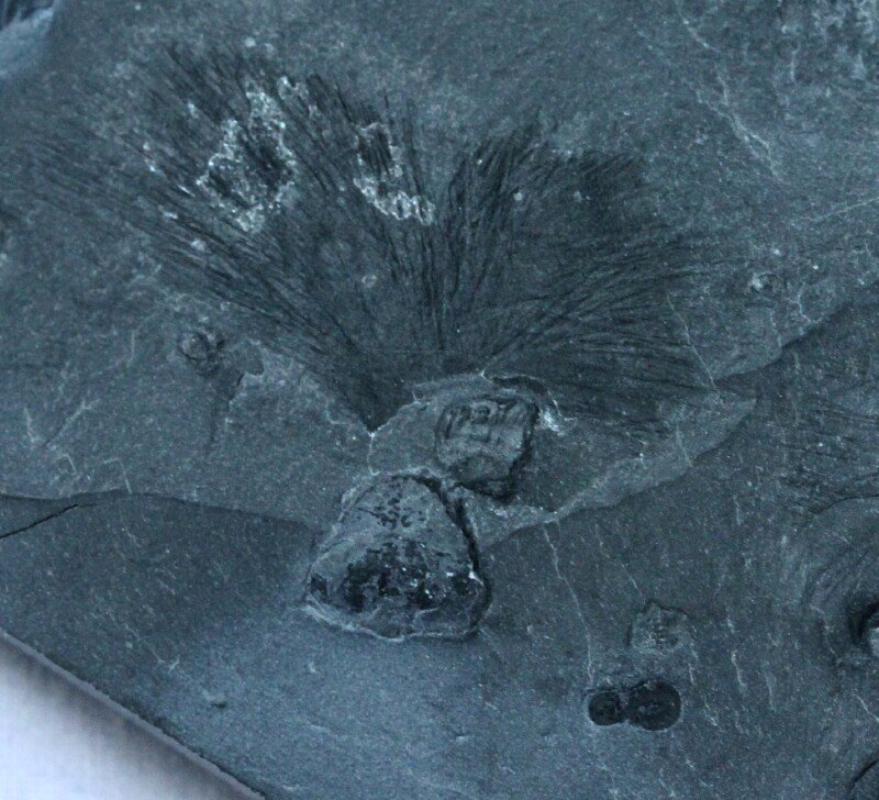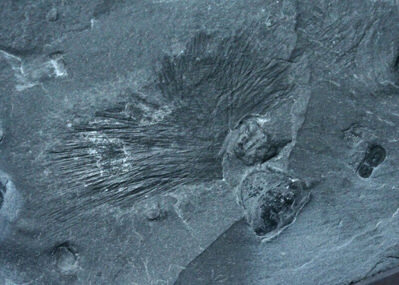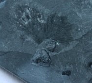 Sponge and Trilobite AssemblageChoia sp. Class Demospongia, Subclass Ceractinomorpha, Order Monaxida, Family Choiidae Peronopsis sp. Trilobite Order Agnostida, Family Peronopsidae Geological Time: Middle Cambrian (~520 million years ago) Size (25.4 mm = 1 inch): Peronopsis: 4 mm long by 2 mm across Choia: 30 mm and 18 mm long by 12 mm across on a 100 mm by 85 mm matrix Fossil Site: Wheeler Shale, Millard County, Utah Code: ND008 Price: Sold