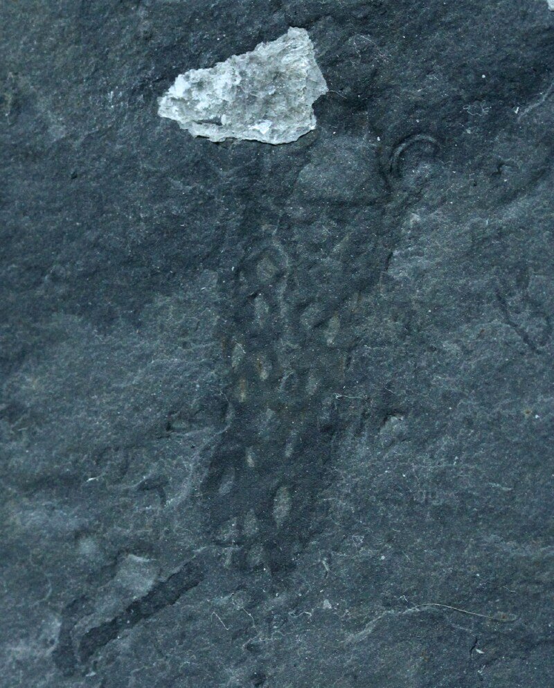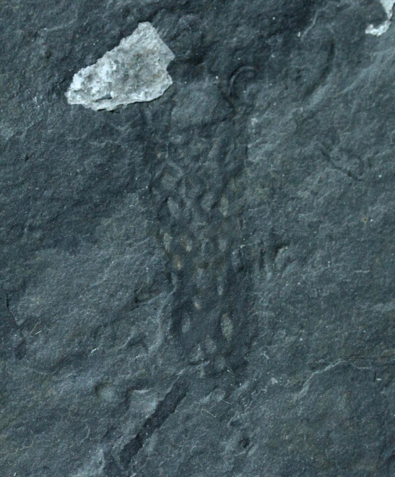 Margaretia dorusDivision Chlorophyta (?), Class Bryopsidophyceae, Order Bryopsidales Geological Time: Middle Cambrian (~520 million years ago) Size (25.4 mm = 1 inch): Alga (?): 35 mm long by 10 mm across on a 63 mm by 98 mm matrix. Fossil Site: Wheeler Shale, Millard County, Utah Code: ND026 Price: $110.00 - sold |