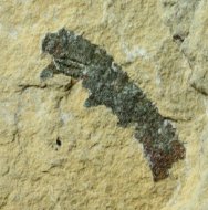 DinocarididaAnomalocarididae, possibly Aomalocaris sp Phylum Arthropoda, Subphylum Crustacea, Class Malacostraca, Class Phyllocarida Geological Time: Upper Middle Cambrian Size (25.4 mm = 1 inch): Fossil is 15 mm long (outside curve) on a 110 mm by 45 mm matrix Fossil Site: Weeks Formation, Millard County, Utah Code: ND010 Price: $300.00 |