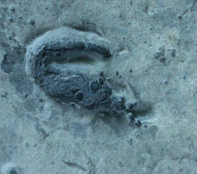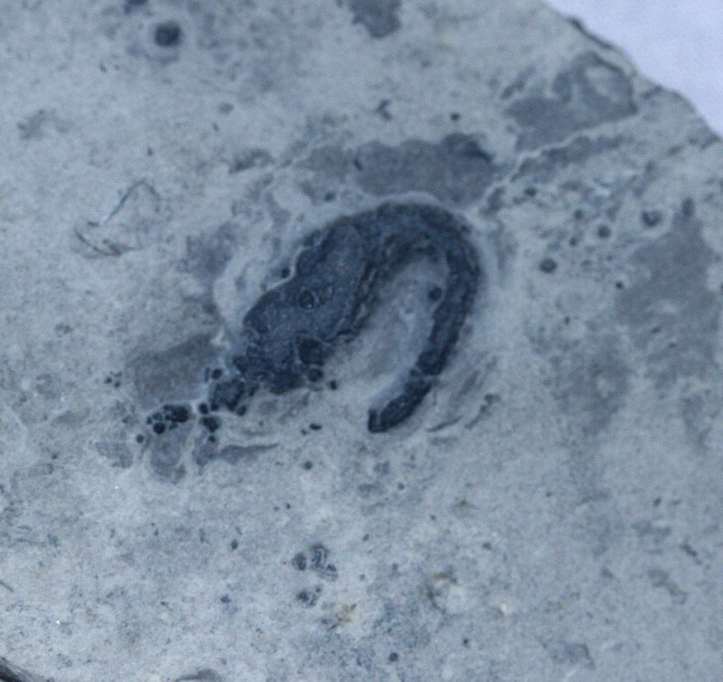 Castericystis sprinkleiPhylum Echinodermata (?) Geological Time: Early/Middle Cambrian (~520 million years ago) Size (25.4 mm = 1 inch): Fossil is 32 mm long (if straight) on an 80 mm by 70 mm matrix Fossil Site: Wheeler Shale, Millard County, Utah Code: ND036 Price: Sold